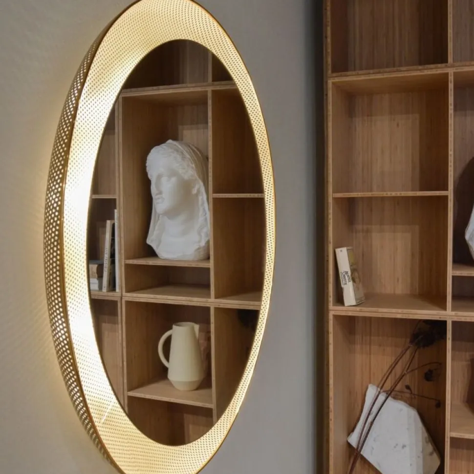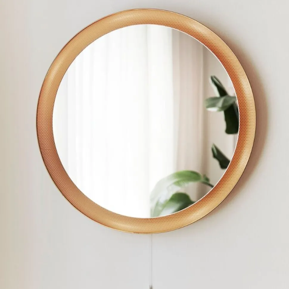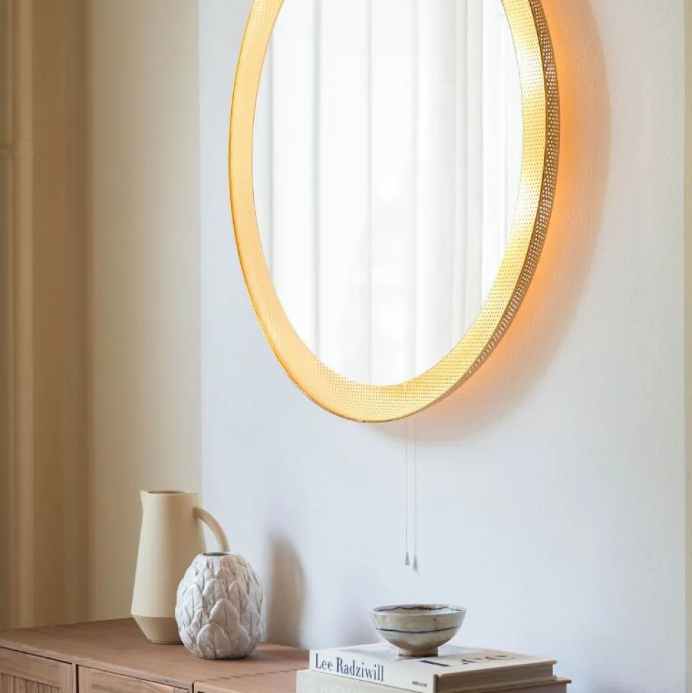 Lækkert spejl med lys. Floris væg spejl, fra den Hollandske designer Floris H. Fiedeljij, var oprindeligt produceret af det berømte og ikoniske design selskab Artimeta i 1950. Artimeta var den gang en af de ledende design- belysning og møbel producenter. I dag har ATBO æren af at kunne producere det evigt smukke og lækre spejl.