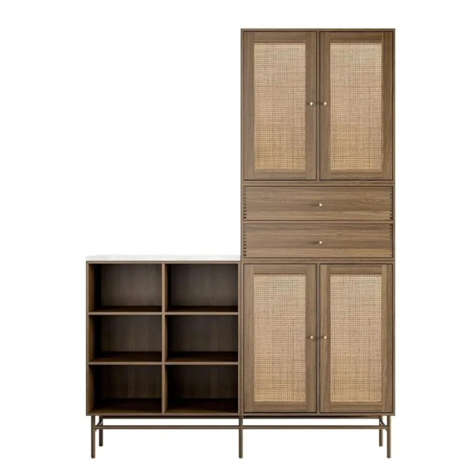 Modulet kan fungere i soveværelset, stuen eller som reol i entréen. Her er reolen vist med Italiensk marmor top plade, som kan tilkøbes. Alle ATBO bogreoler i massivt træ har vores unikke “Finger-tapping” samlinger.
