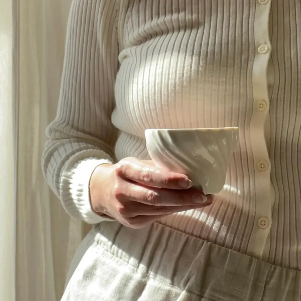 Formfuldendt og håndlavet kop i det fineste hvide porcelænsler. Marée er fransk og betyder ‘tidevand’, hvilket ligeledes er tidsvandskoppens inspirationskilde. Koppen er således inspireret af Vadehavets bølgende sandbund, når vandet har trukket sig tilbage, hvormed den nøgne havbund blottes. Dét er det særlige ved dette foranderlige område. Designet er skabt med tidløshed for øje og kærlighed til håndværk, hvorfor der kan forekomme små variationer fra kop til kop.