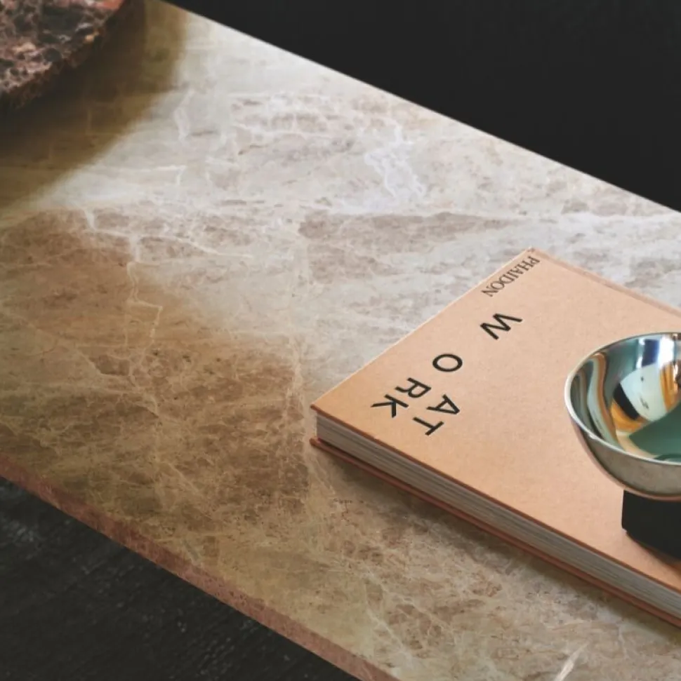 Metro bordet er essensen af urban enkelthed. Den lette benkonstruktion er inspireret af Londons ikoniske metrosystem Bordpladen er i marmor i farven Emperador Beige: en rigt mønstret cremet beige med en varm sandfarvet undertone. Metro bordene fås i fire størrelser og tre forskellige marmorvarianter. De mange varianter giver rig mulighed for at benytte marmorbordene forskellige steder i indretningen.