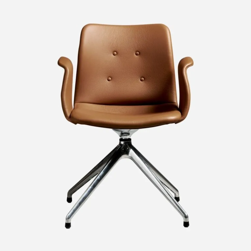 En meget elegant og yderst komfortabel spisebordsstol. Primum er et meget moderne møbel, som virkelig har gjort sig bemærket indenfor dansk interiør design. Primum Chair følger din krops naturlige siddestillinger. Dreje- og tiltfunktionen sikrer, at du aldrig føler dig fastlåst, og det smarte returdrej sørger for, at stolen altid finder tilbage til sin udgangsposition, så udtrykket omkring bordet altid står knivskarpt.