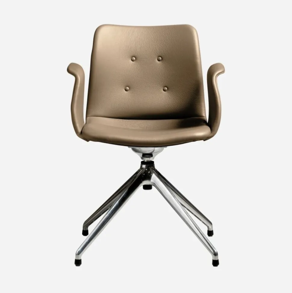 En meget elegant og yderst komfortabel spisebordsstol. Primum er et meget moderne møbel, som virkelig har gjort sig bemærket indenfor dansk interiør design. Primum Chair følger din krops naturlige siddestillinger. Dreje- og tiltfunktionen sikrer, at du aldrig føler dig fastlåst, og det smarte returdrej sørger for, at stolen altid finder tilbage til sin udgangsposition, så udtrykket omkring bordet altid står knivskarpt.