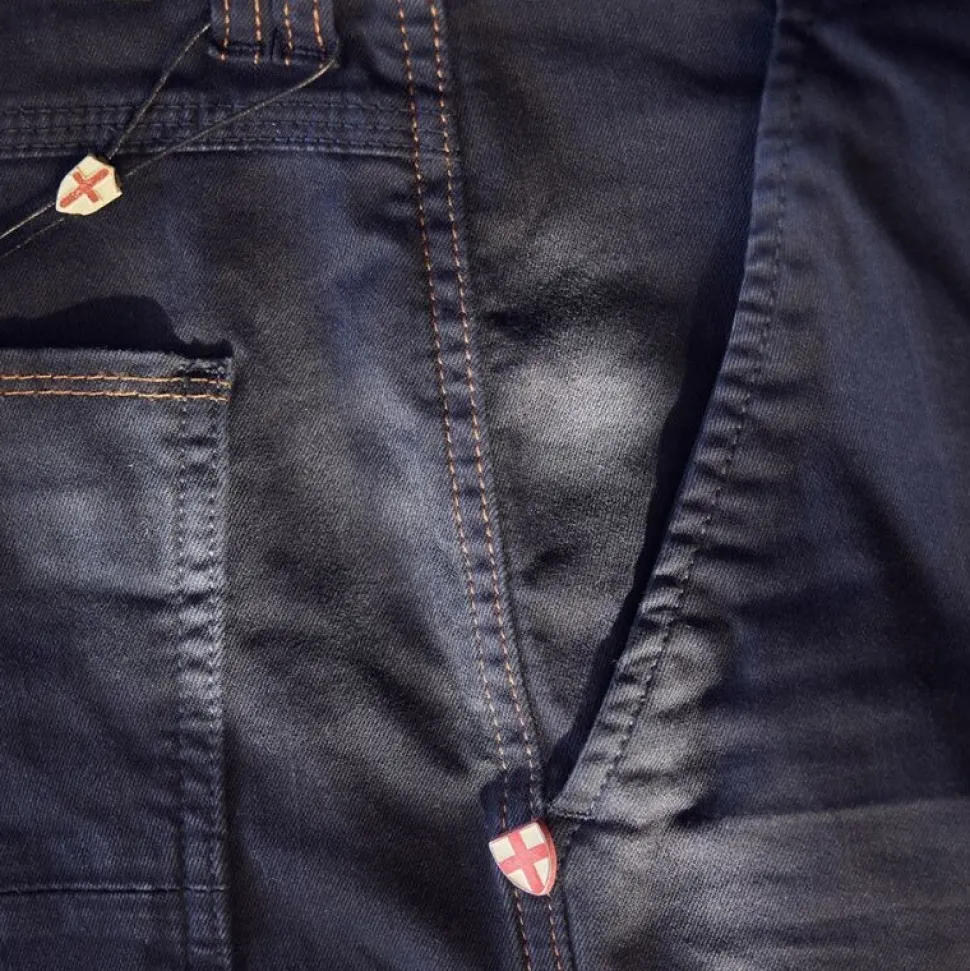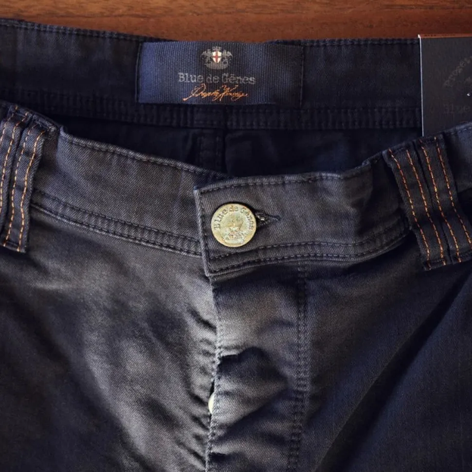 Praktiske skrålommer foran og foret baglommer sikrer funktionalitet, mens branded knapper, rød signatur-stikning og Blue de Gênes-flagnitte tilfører et unikt og raffineret præg.