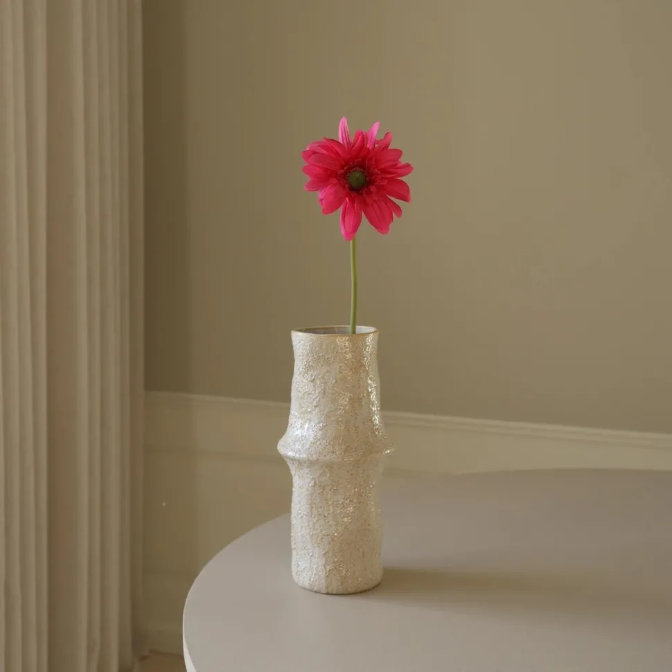 Fyldig, farverig og fuld af karakter. Blomsten har et stort, lagdelt blomsterhoved i en dyb rosa farvenuance med subtile tonevariationer, der giver liv og dybde til blomsten. De teksturerede kronblade stråler ud fra en blød grøn midte og skaber et struktureret, næsten skulpturelt udtryk. Den slanke grønne stilk har en let, naturlig bue, der tilfører arrangementet en organisk bevægelse og blødhed. Et selvsikkert blomsterstatement – ideel til at tilføje fylde, farve og form til ethvert rum med stil og lethed.
