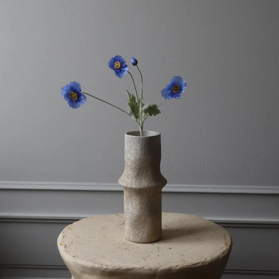 Naturtro valmueblomst i den fineste farvenuance. Blomsten harmonerer smukt, når den kombineres til en enkelt buket, idet der herved skabes et iøjnefaldende fokuspunkt, der efterlader et varigt indtryk. Blomsterhovedet er lavet af et stofmateriale, mens bladene er dækket med trichomer, for at genskabe udseendet af en naturlig valmue. Blomsten er designet til at være alsidig, hvorfor stilken kan bøjes og formes efter eget ønske. Lad kreativiteten blomstre!