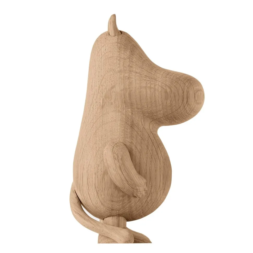Mumitrolden er en klassiker, der er elsket af mange. Invitér Mumitrolden ind i hjemmet og hold ham med selskab, således hans energigivende positivitet spredes. Lad træfiguren leve videre som en moderne designklassiker i massiv egetræ og med bevægelige arme.