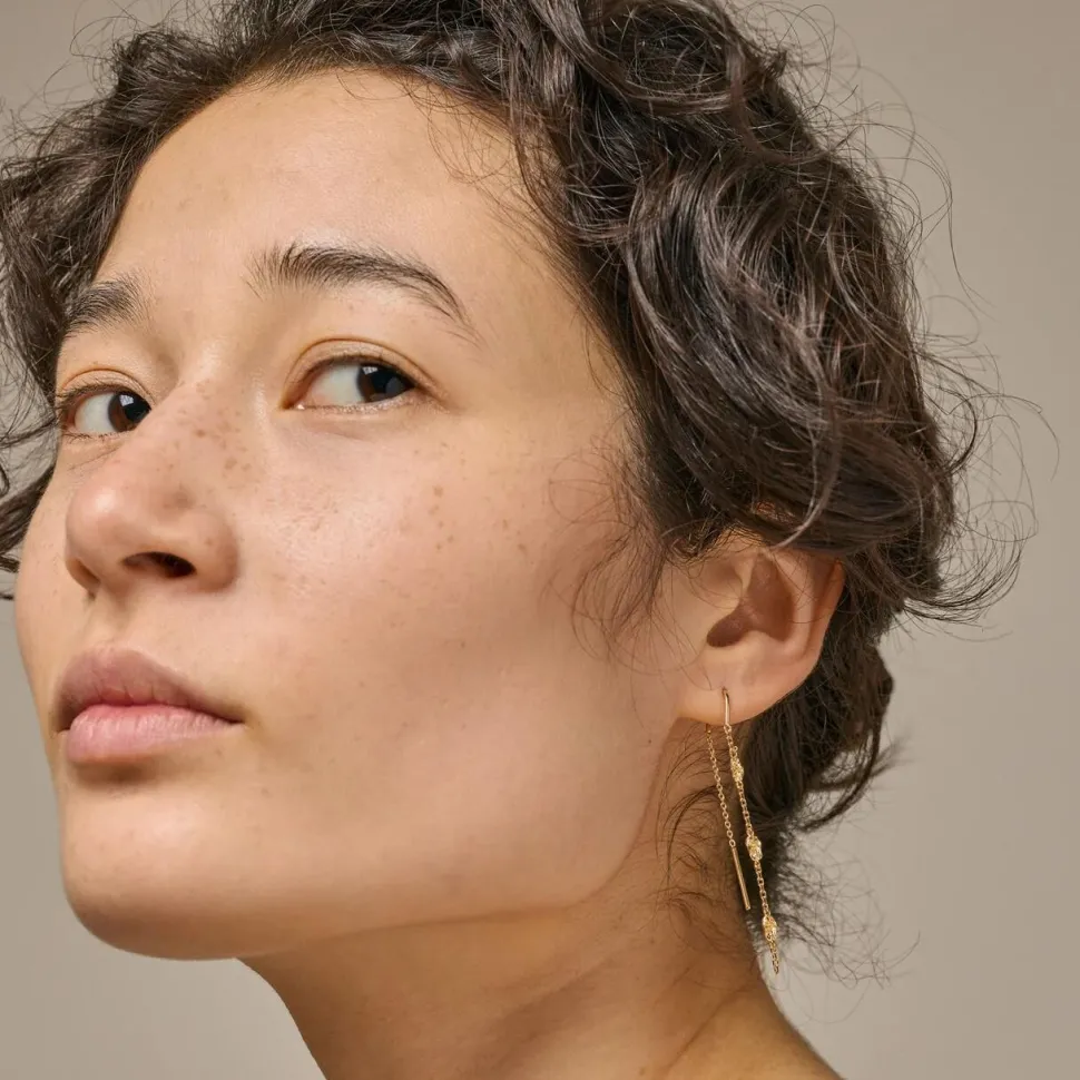 Fine og tidløse øreringe med de fineste detaljer. Designet er raffineret, men udtrykket er enkelt, hvorfor øreringene er ideelle til både hverdag og festlige begivenheder. Øreringene er yndige at kombinere med andre smykker, men er tilmed fine og anvendelige i al sin enkelthed.
