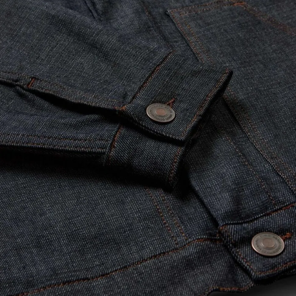 Jakken kombinerer et klassisk workwear-look med moderne komfort. Den er fremstillet i en slidstærk kvalitet med 98% bomuld og 2% elastan, hvilket giver både holdbarhed og let stræk for øget bevægelsesfrihed. Jakken har en almindelig pasform og en mørkeblå vask, der giver et råt, vintage-inspireret udtryk.