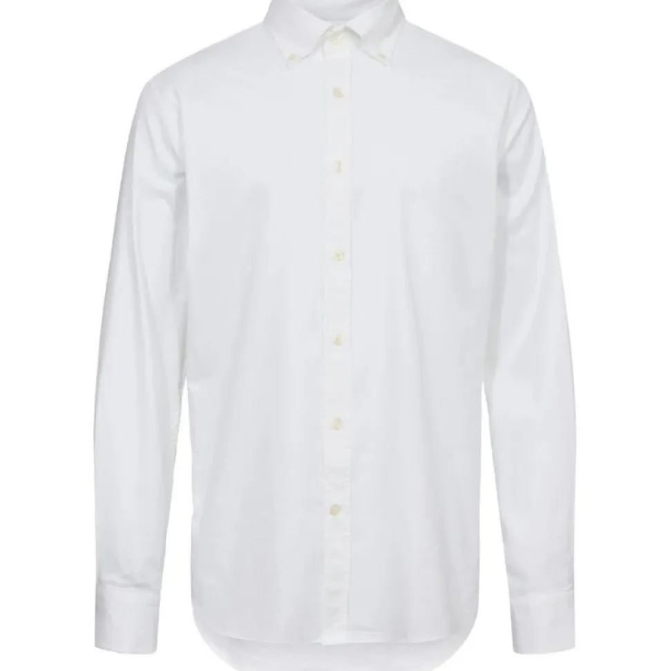Skjorten har en almindelig pasform og er designet med klassiske detaljer som skjortekrave, knaplukning foran og lange ærmer med manchetter. Det rene hvide look gør den nem at style – perfekt under en blazer, med jeans eller alene for et skarpt og stilrent udtryk.