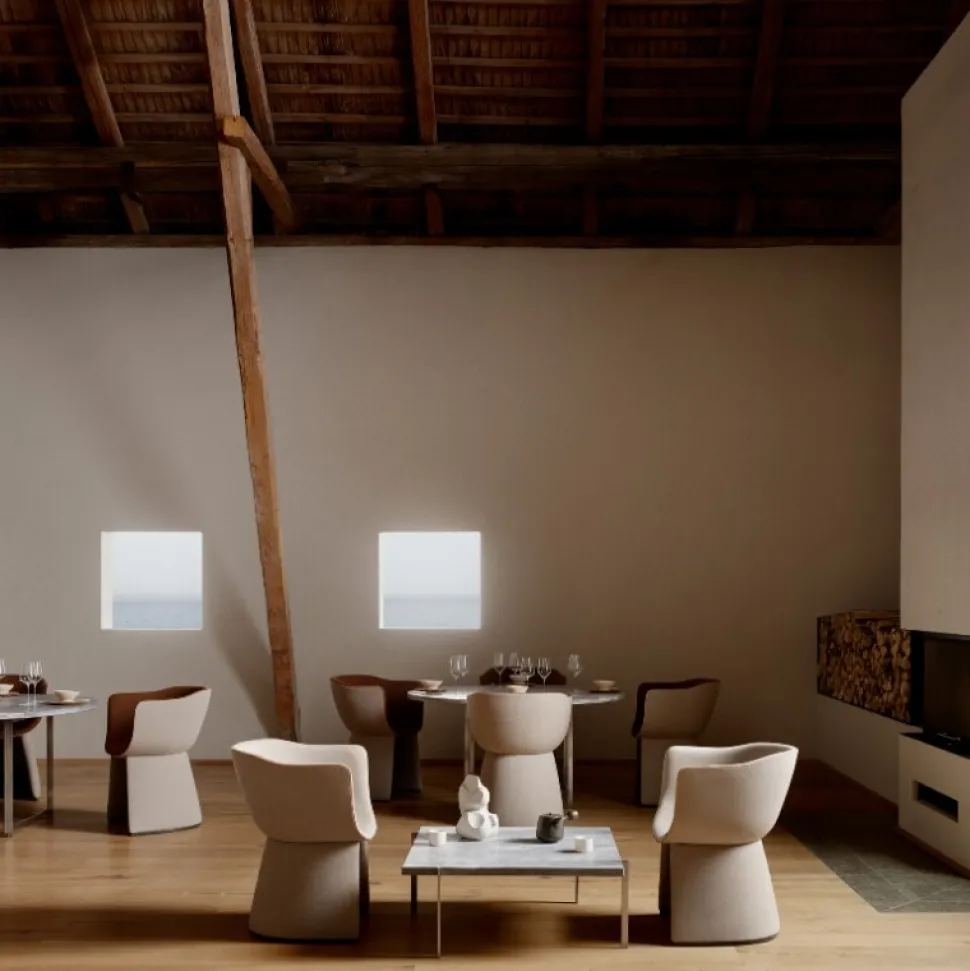 Monolit™ stolen, designet af danske Cecilie Manz, kombinerer skulpturel elegance med funktionel komfort og er ideel til både lange, intime middage og afslappede stunder i moderne loungeområder. Den unikke formgivning omfavner kroppen og skaber en følelse af privathed, samtidig med at der er plads til opbevaring af personlige ejendele under sædet.