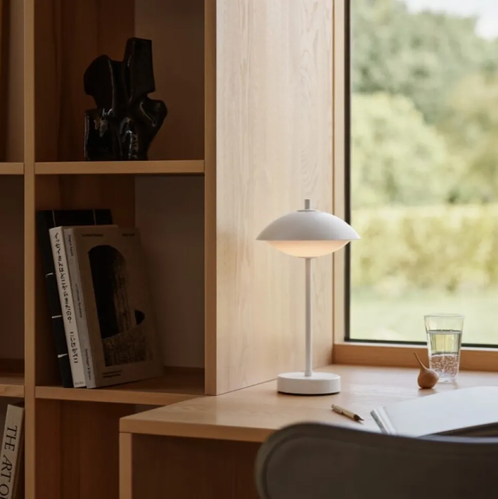 Med Fritz Hansen Musling™ Portable-lampen, designet af Ahm & Lund tilføjes en fleksibel lampe til Musling-serien. Denne stilrene, genopladelige lampe kombinerer form og funktion og supplerer den eksisterende kollektion af pendler, bord- og gulvlamper. Med en robust polycarbonatskærm, en stålstamme og intuitiv touch-dæmpning er den ideel til både indendørs og udendørs brug. Den fås i hvid, nine grey og dusk blue, alle med en mat finish, der sikrer et elegant udtryk samt en overflade, der ikke efterlader fingeraftryk.
