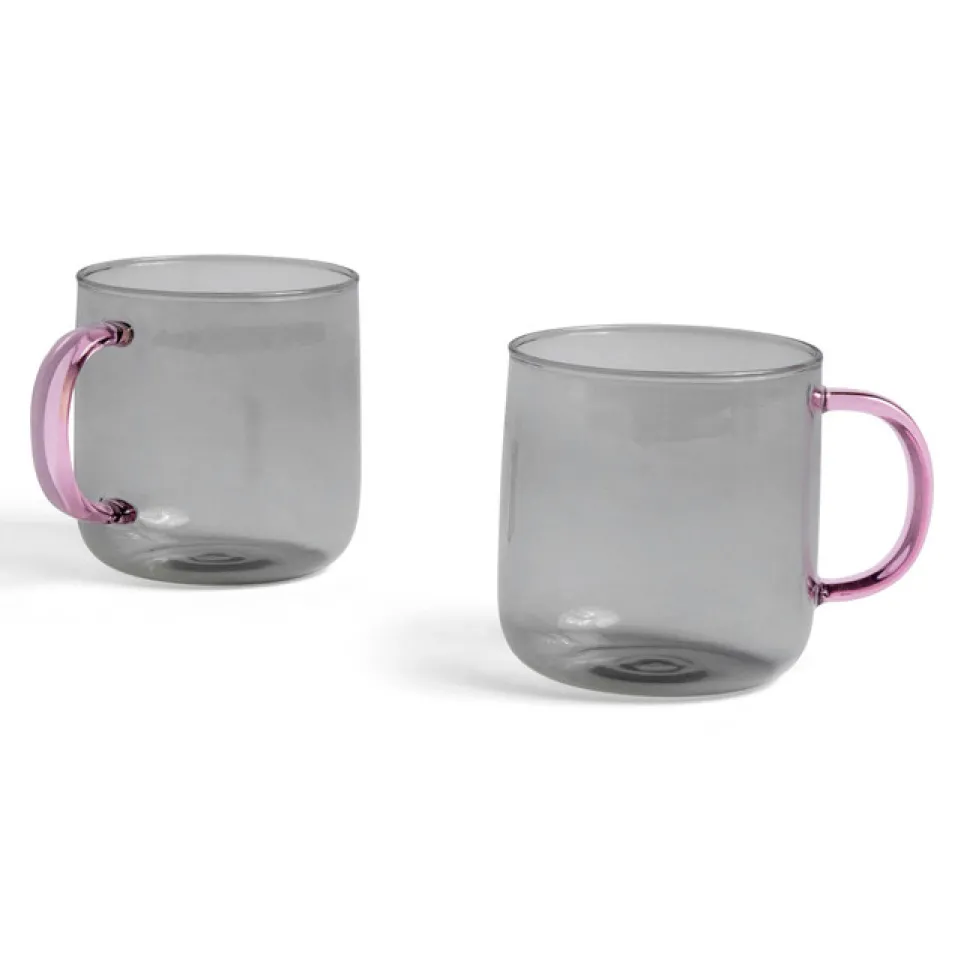 Fine og elegante krus, som er fremstillet i farvet, borosilikat glas. Krusene har en rund og symmetrisk form, hvilket skaber et velbalanceret og afstemt udtryk. De praktiske krus er – foruden deres funktionalitet – dekorative i køkkenet.