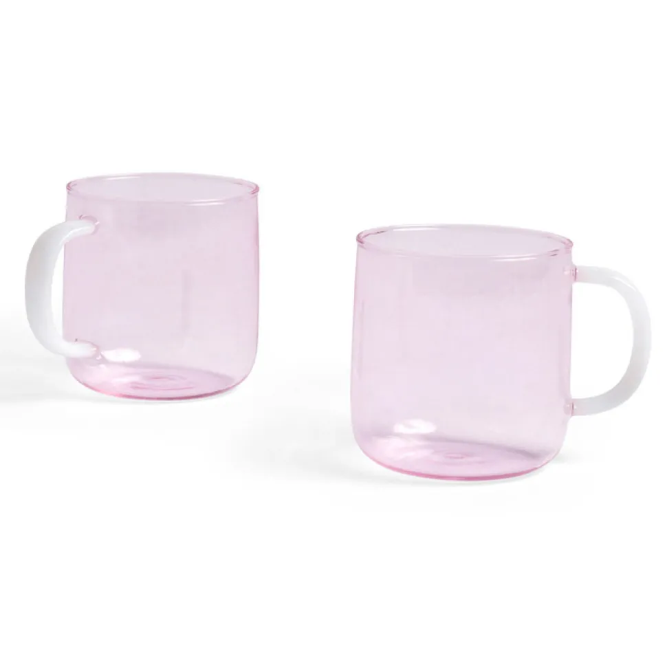 Fine og tidløse krus, som er fremstillet i farvet, borosilikat glas. Krusene har en rund og symmetrisk form, hvilket skaber et velbalanceret og afstemt udtryk. De praktiske krus er – foruden deres funktionalitet – dekorative i køkkenet.