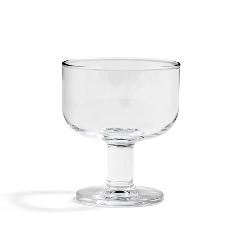 Moderne og minimalistisk glas med en rustik appel, som følge af den afbalancerede form med chunky stilk. Glasset er fremstillet i kraftigere glas med holdbar kvalitet, hvorfor det er velegnet til hverdagsbrug. Glasset er multifunktionelt og alsidigt, hvilket tilskynder benyttelse til alt fra drikkevarer til desserter.