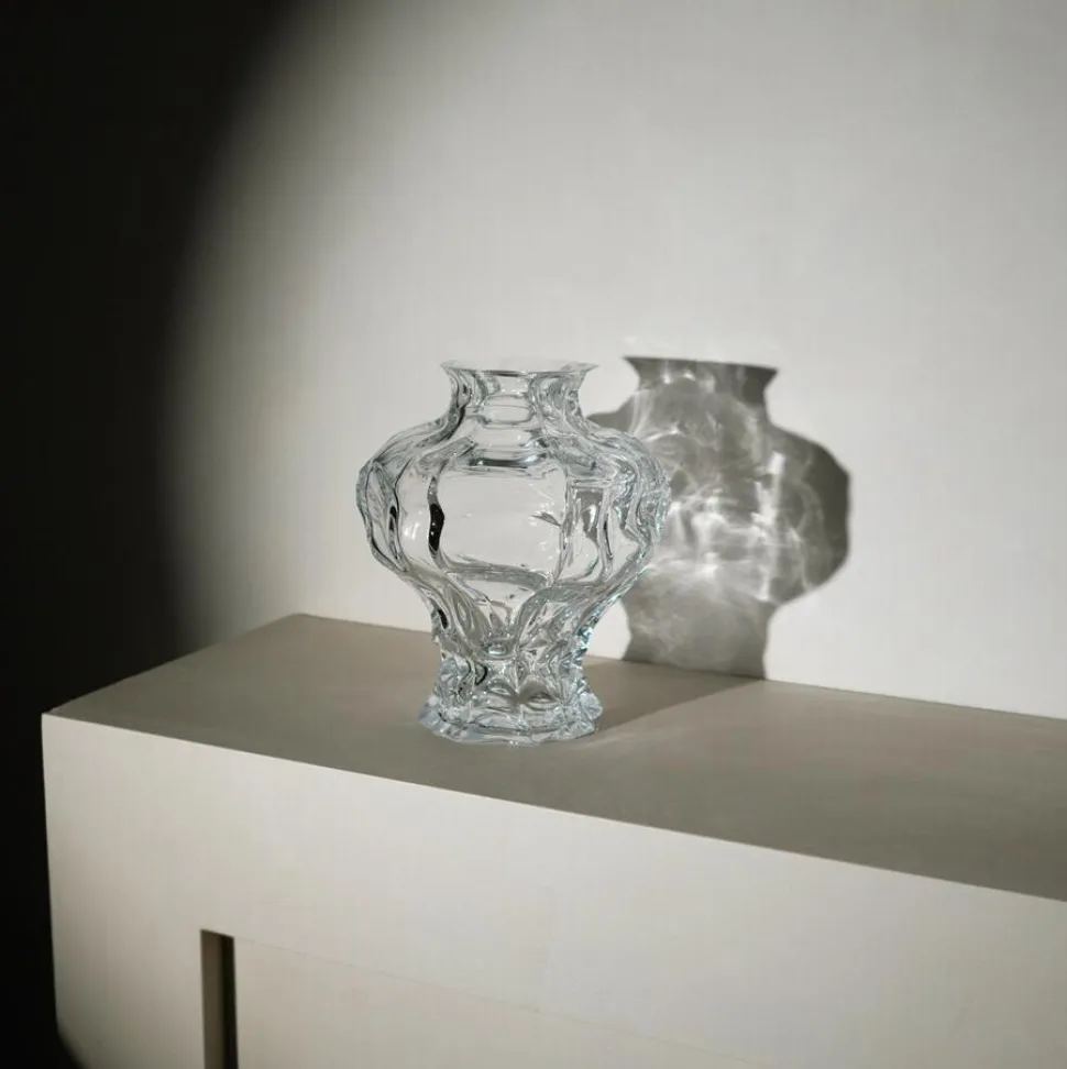 Voluminøs og iøjnefaldende vase, der på fineste vis afspejler minimalisme. Vasen er inspireret af havdyret ‘Ammonit’, der levede for 66 millioner år siden og som nu kun findes i fossiler. Vasen er skabt med en fascination af at kombinere fortid og nutid i et organisk, naturinspireret design. Hver vinkel er unik og asymmetrisk som ammonitskallen. Dens tidløse, men moderne form, er skabt for at hylde skønhed, der engang var.