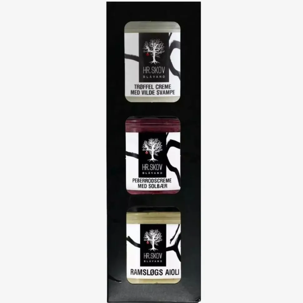 Tapas Kit er perfekt til tapasbordet og indeholder 3 af produkter som Hr. Skov aldrig ville undvære på tapasbordet: Trøffel creme med vilde svampe, Peberrods creme med danske solbær samt favoritten over dem alle, nemlig Ramsløgs aiolien.