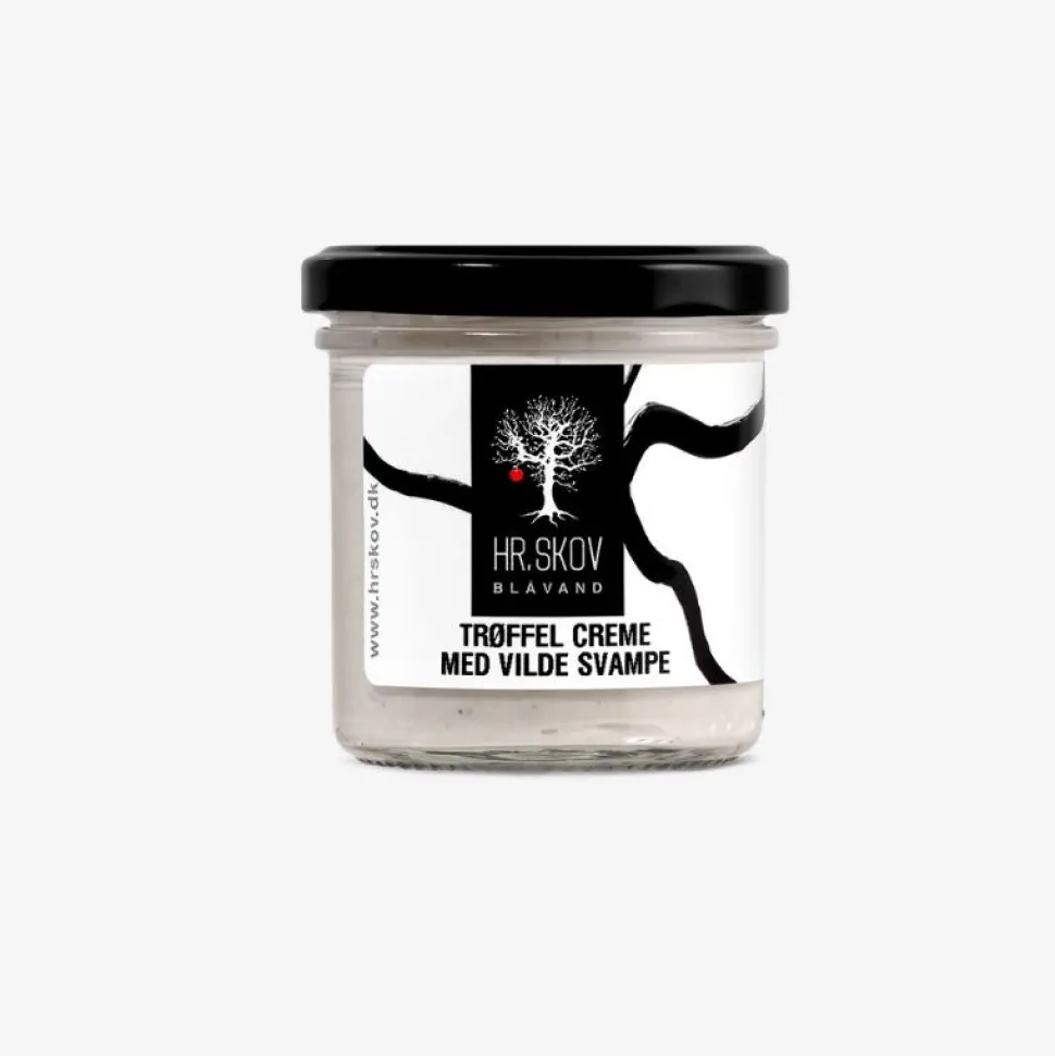 Hr. Skov’s Trøffel Creme er en luksuriøs mayonnaise, hvor vi har kræset lidt ekstra for at skabe en uforglemmelig smagsoplevelse. Denne cremede sauce indeholder en blanding af vilde svampe, der er omhyggeligt indsamlet i den danske natur, samt en eksklusiv hvid trøffelessens.