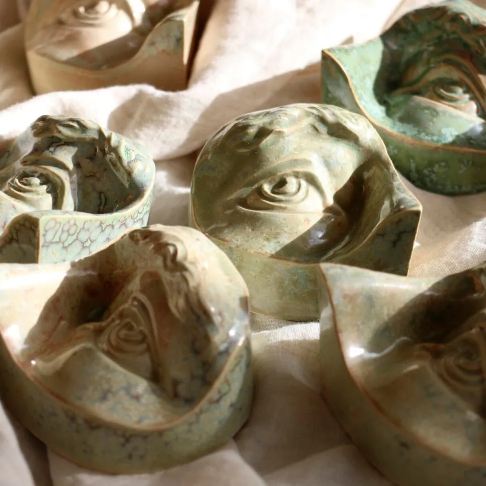 Unik og keramisk relief, der skaber en karakterfuld indretning. Relieffet er inspireret af antikkens skulpturkunst, hvilket afspejles i designets klassiske elegance og formsprog. Lad kunstværket blive centrum for samtale, kilde til inspiration og symbol på kreativitet.