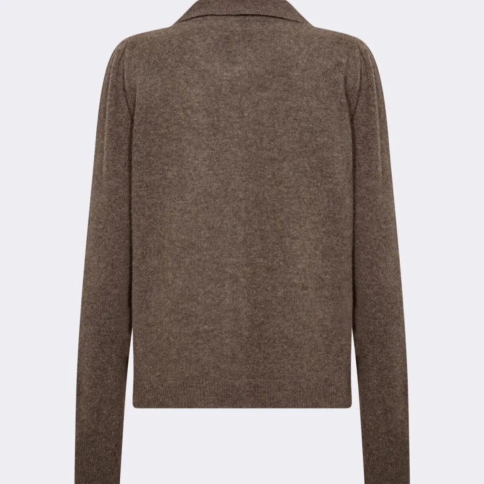Yndefuld trøje, der på harmonisk vis kombinerer tidløs elegance og moderne raffinement. Qua materialevalget omfavner den huden med blødhed og lethed, mens den ribbede tekstur tilføjer varme, subtil dybde og karakter til silhuetten. Den klassiske krave og de diskrete knapper foran tilfører et sofistikeret udtryk, der fremhæver pulloverens eksklusive design.