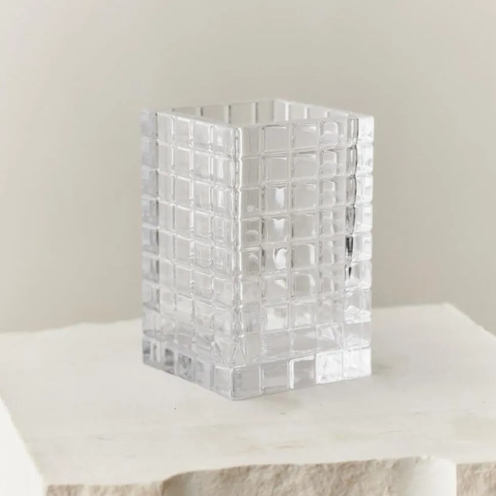 Stilfuld og subtilt levende lysestage, der er inspireret af ‘The City That Never Sleeps’ – New York City. Designet er markeret med sine kubiske detaljer og fremviser et interessant samspil mellem en solid, men blid taktil. Qua formsproget brydes lyset på fineste vis, hvorfor den i an sin enkelthed er et dekorativt element. Lysestagen er mundblæst, hvorfor ej to objekter er identisk.