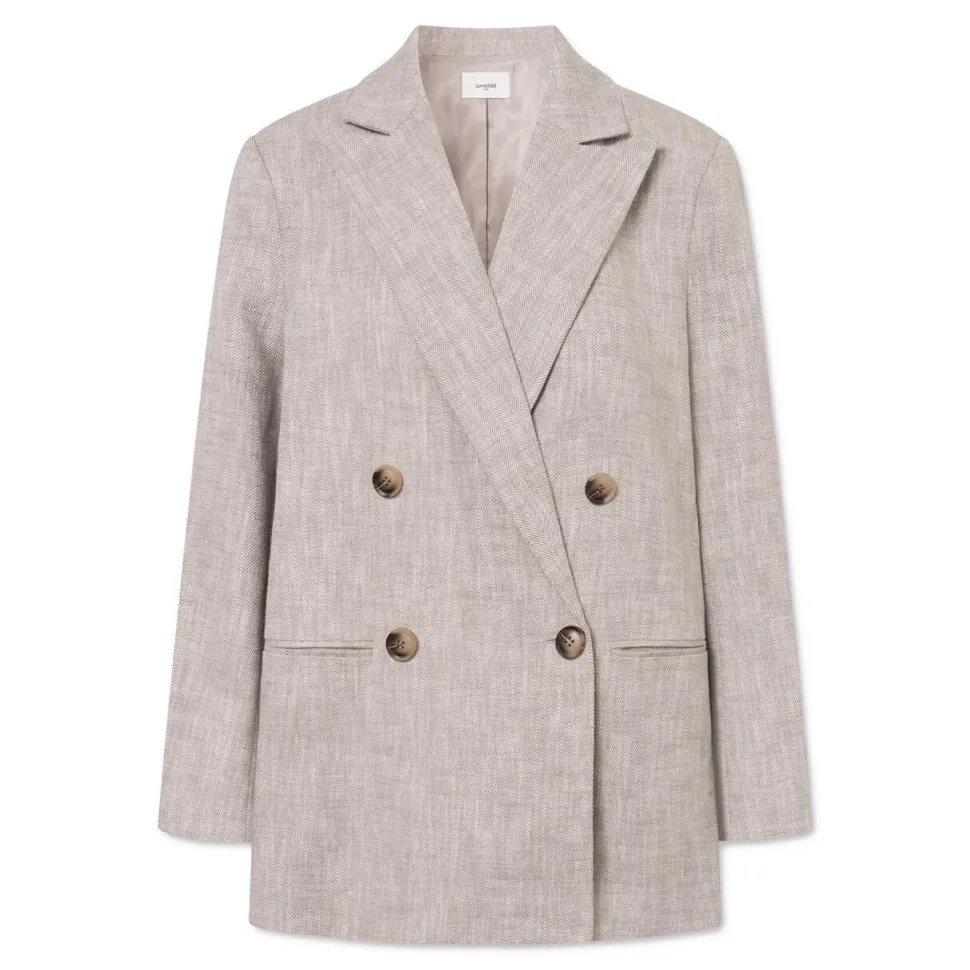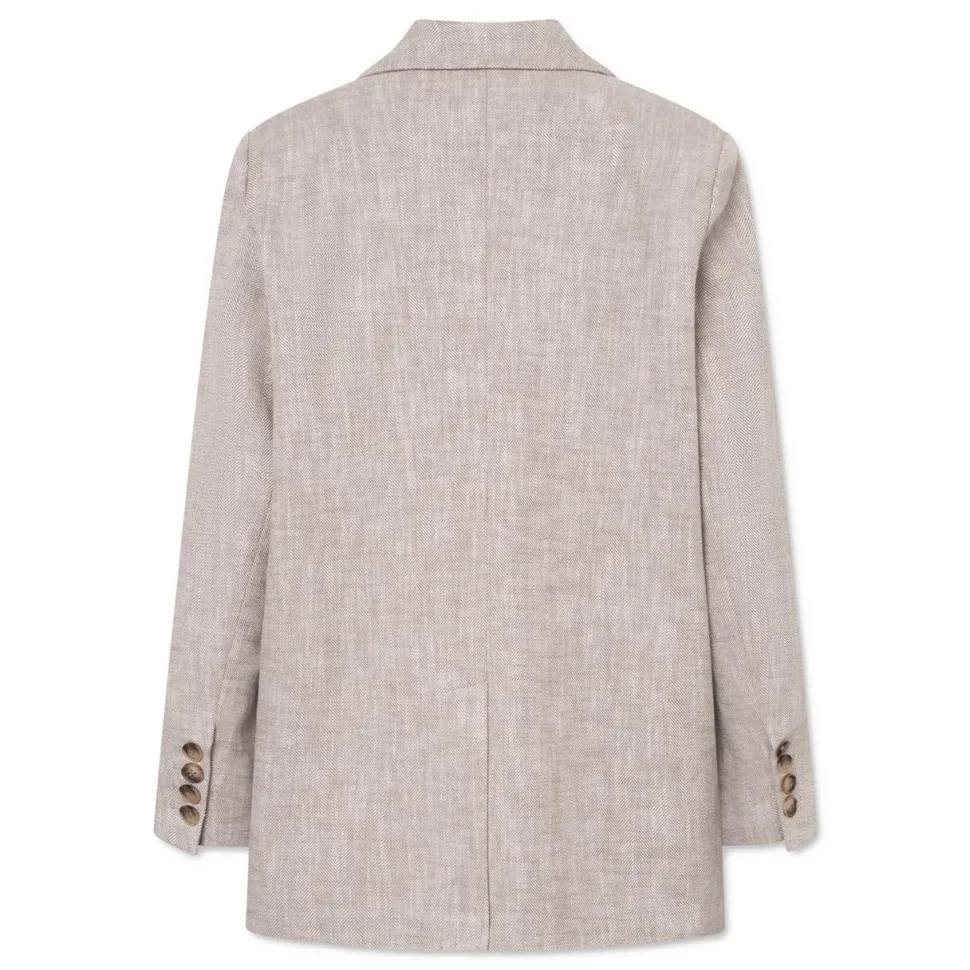 Træd ind i sæsonen med stil i en blazer, der er definitionen på underspillet luksus. Med sit skarpe snit og afslappede fit kombinerer den det maskuline og feminine i en harmonisk balance, der løfter ethvert outfit. Blazeren er skabt i en struktureret kvalitet, der falder smukt og giver et sofistikeret udtryk. Den oversized pasform giver et afslappet udtryk, mens den spidse revers og de paspolerede lommer tilfører et skarpt og stilrent look. Den dobbeltradede knaplukning understreger blazeren som et statement-piece i enhver garderobe.