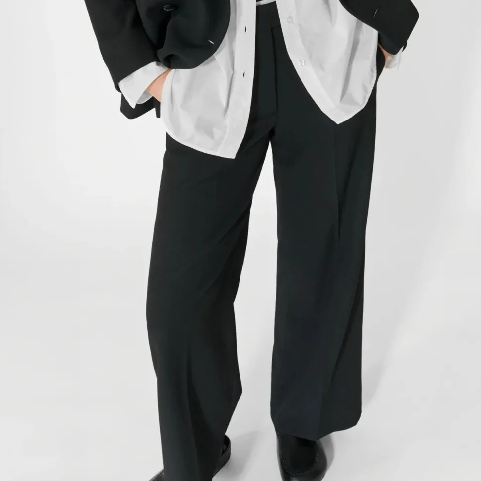 Klassiske bukser, der løfter enhver garderobe med både elegance og komfort. Bukserne er fremstillet i en luksuriøs viskose/polyester-kvalitet, der sikrer et let og behageligt fit. Med en almindelig taljehøjde, stiklommer og vidde i benene opnås en fin silhuet, mens den asymmetriske lukning foran tilføjer et moderne touch. Qua det afslappede, men elegante udtryk er bukserne et must-have, idet de kan styles til både hverdag og festlige begivenheder.