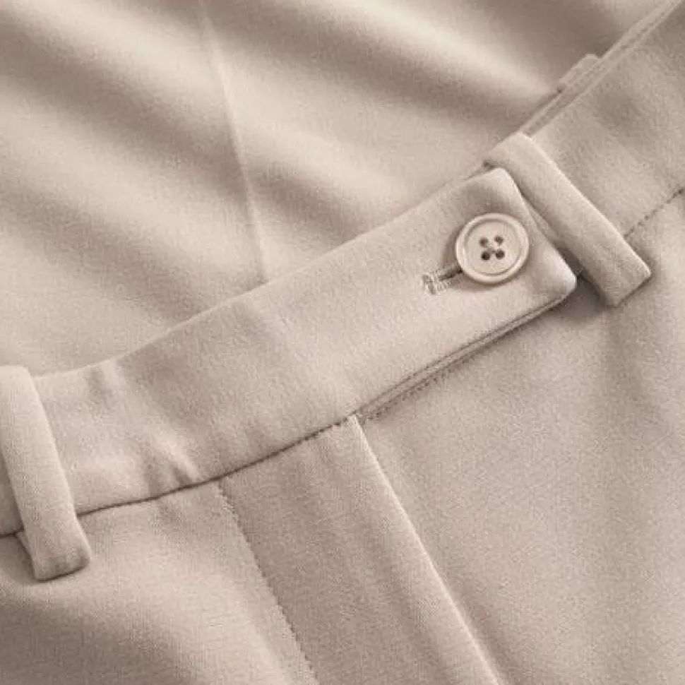 Klassiske bukser, der løfter enhver garderobe med både elegance og komfort. Bukserne er fremstillet i en luksuriøs viskose/polyester-kvalitet, der sikrer et let og behageligt fit. Med en almindelig taljehøjde, stiklommer og vidde i benene opnås en fin silhuet, mens den asymmetriske lukning foran tilføjer et moderne touch. Qua det afslappede, men elegante udtryk er bukserne et must-have, idet de kan styles til både hverdag og festlige begivenheder.