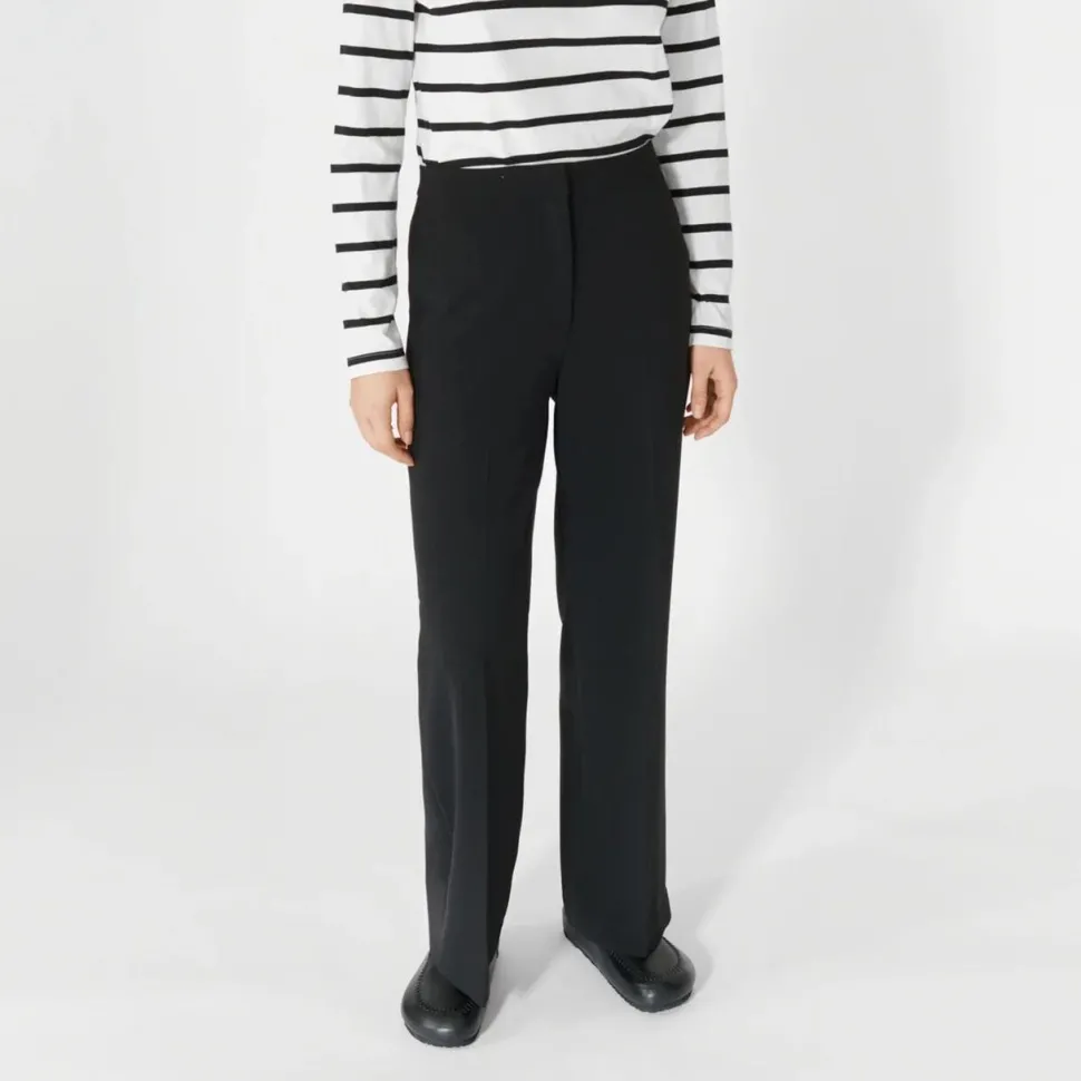 Klassiske bukser, der emmer af feminin elegance og stil, der varer ved. Med stiklommer, skjult lukning og paspolerede baglommer, tilbyder disse bukser en fin balance mellem sofistikeret design og komfort. Qua det løse fit og pressefolderne fremhæver bukserne en stilfuld silhuet, der er velegnet til enhver anledning. Den skjulte lukning med lynlås og hægte giver et minimalistisk udtryk, mens de paspolerede baglommer tilfører et eksklusivt touch.