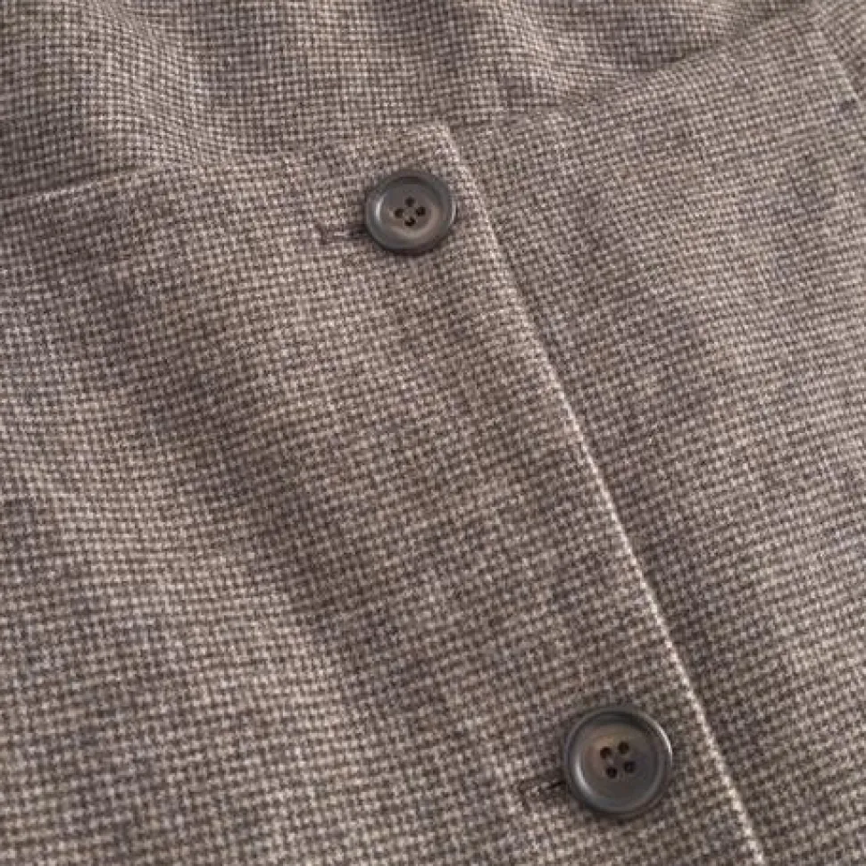 Sofistikeret nederdel med et klassisk mønster og moderne attitude. Det tidløse beige houndstooth-mønster og det ankellange snit giver et elegant udtryk, mens den løstsiddende pasform og de skjulte lommer i kilerne tilfører praktisk komfort og bevægelsesfrihed. Det fine vævede kvalitet, kombineret med en gennemgående knaplukning og let foer, gør nederdelen ideel til både hverdag og mere formelle sammenhænge. Style den med en tætsiddende top eller chunky strik.