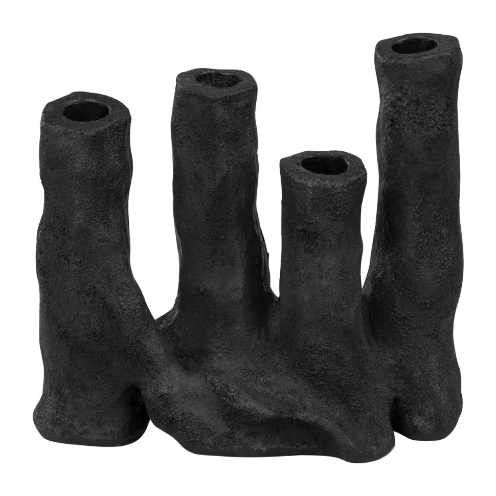 Yndefuld og iøjnefaldende lysestage, der på fineste vis skaber en stemningsfuld atmosfære i hjemmet. Designet er særegent og kendetegnet ved et organisk formsprog med naturlige og bløde linjer, der bidrager til et moderne og tidløst udseende. Farvevalget skaber en kraftfuld kontrast til lysets bløde skær, hvorfor den nemt kan integreres i enhver indretningsstil. Lysestagen er ej blot en stage, men tilmed et kunstværk, der tilføjer både funktionalitet og æstetik til hjemmet.
