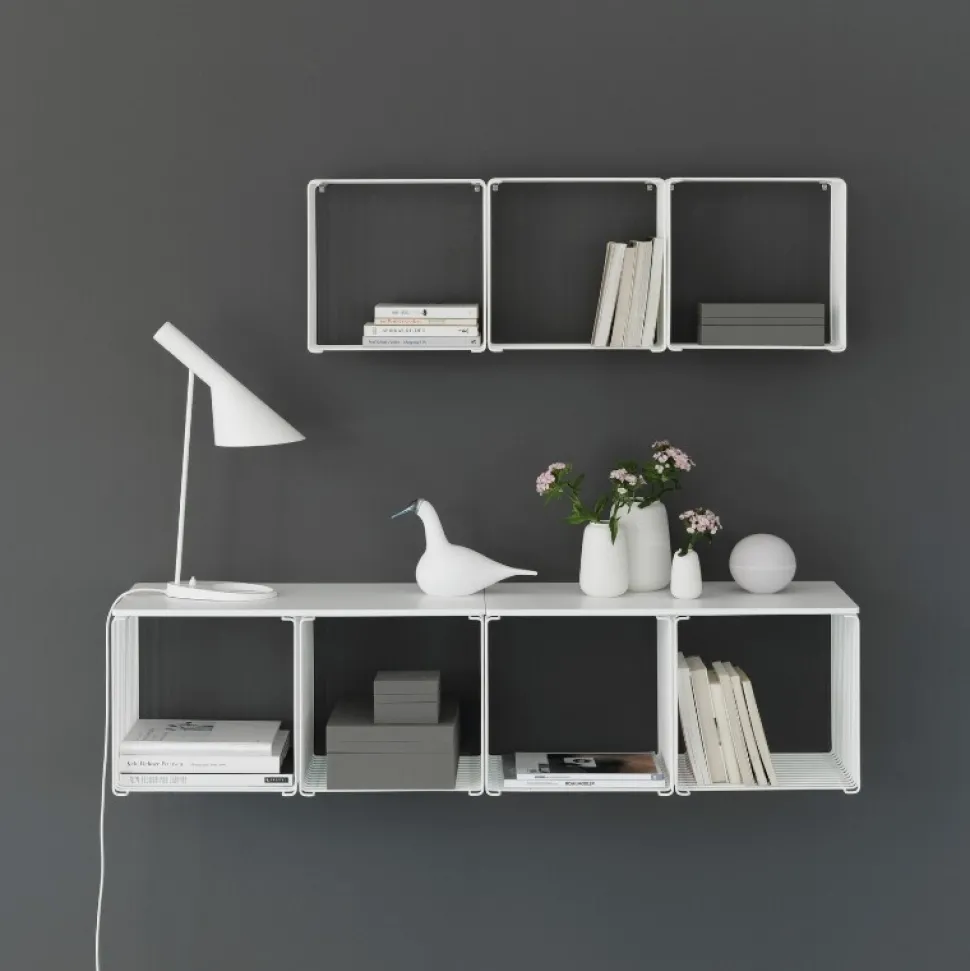 Brug den enkeltvis eller sammensæt flere moduler for at skabe et møbel der passer ind i din personlige boligindretning. Montana Verner Panton trådreolen kan bruges i flere af hjemmets rum på gulvet, væggen eller som rumdeler.