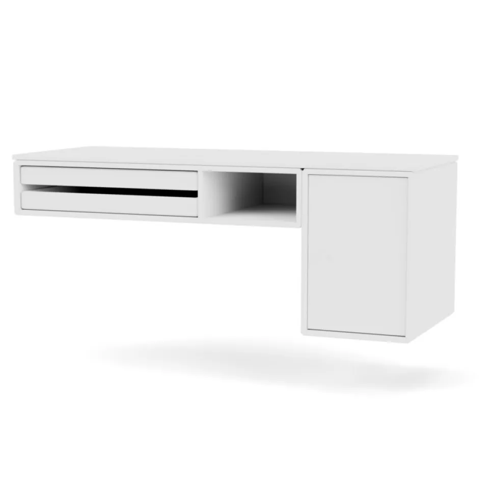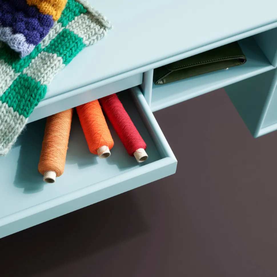 Fleksibel opbevaring i de fineste farver og med et utal af anvendelsesmuligheder. Skrivebordet er et funktionelt og kreativt møbel, som passer perfekt ind i multifunktionelle rum og kroge. Skrivebordet har to aflange bakker og et åbent rum under toppladen, samt et skabsmodul i siden.