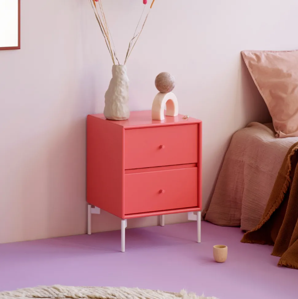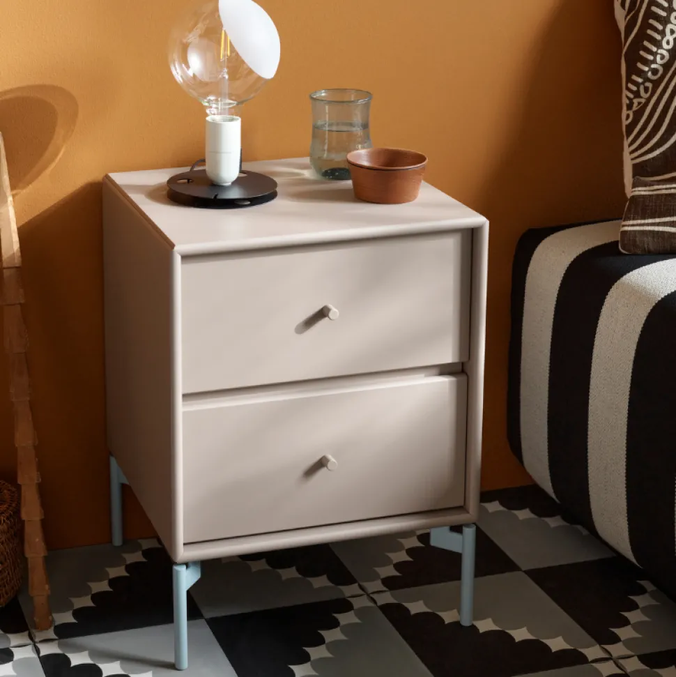 Drift er et lille sengebord, som kan designes med enten hjul, ben eller ophængsbeslag. Sengebordet er fremstillet med to skuffer, hvilket tilfører en stilfuld og funktionel opbevaringsmulighed. Drift-sengebordet er udført i et enkelt og elegant design, som er helt ideel til det skandinaviske hjem.