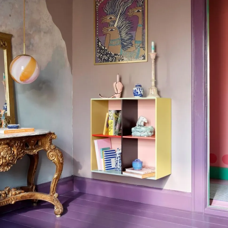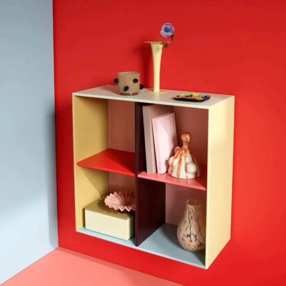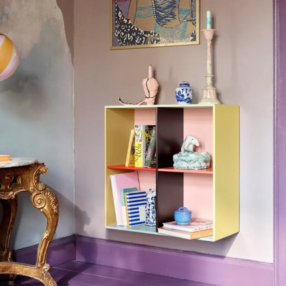 Hver overflade på KIMPOP SHOW-hylden viser sin egen distinkte farve, der blander bløde, cremede pasteller med den levende energi af lysere, mere mættede nuancer. Denne harmoniske kontrast skaber fire unikke rum, perfekt til at organisere og udstille alle dine personlige skatte.