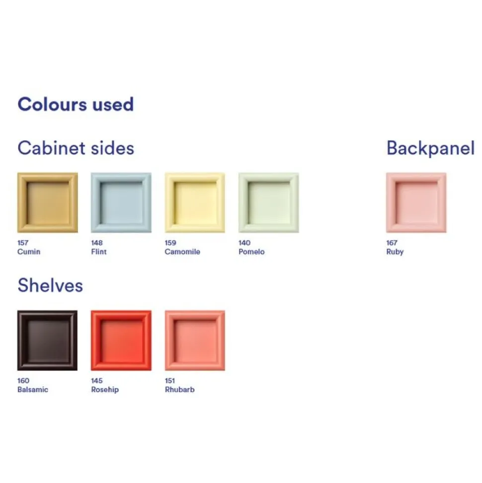 Farver: Cumin, Flint, Camomile, Pomelo, Ruby, Balsamic, Rosehip, Rhubarb