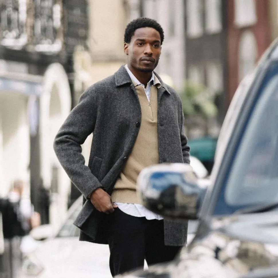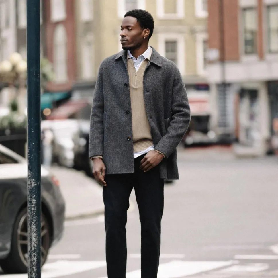 Skræddersyet i klassisk sildebensmønster og kvalitetsuld, tilbyder frakken en let, svævende silhuet, der bevæger sig elegant med kroppen. Den forede konstruktion sikrer varme og komfort, mens den regulære pasform giver plads til lag-på-lag uden at gå på kompromis med formen. Frakken er detaljeret med en knaplukning, funktionelle sidelommer og et underspillet design, der gør den både praktisk og stilfuld. Et ideelt valg til arbejde, byliv eller weekendture, hvor tidløs elegance møder moderne komfort.