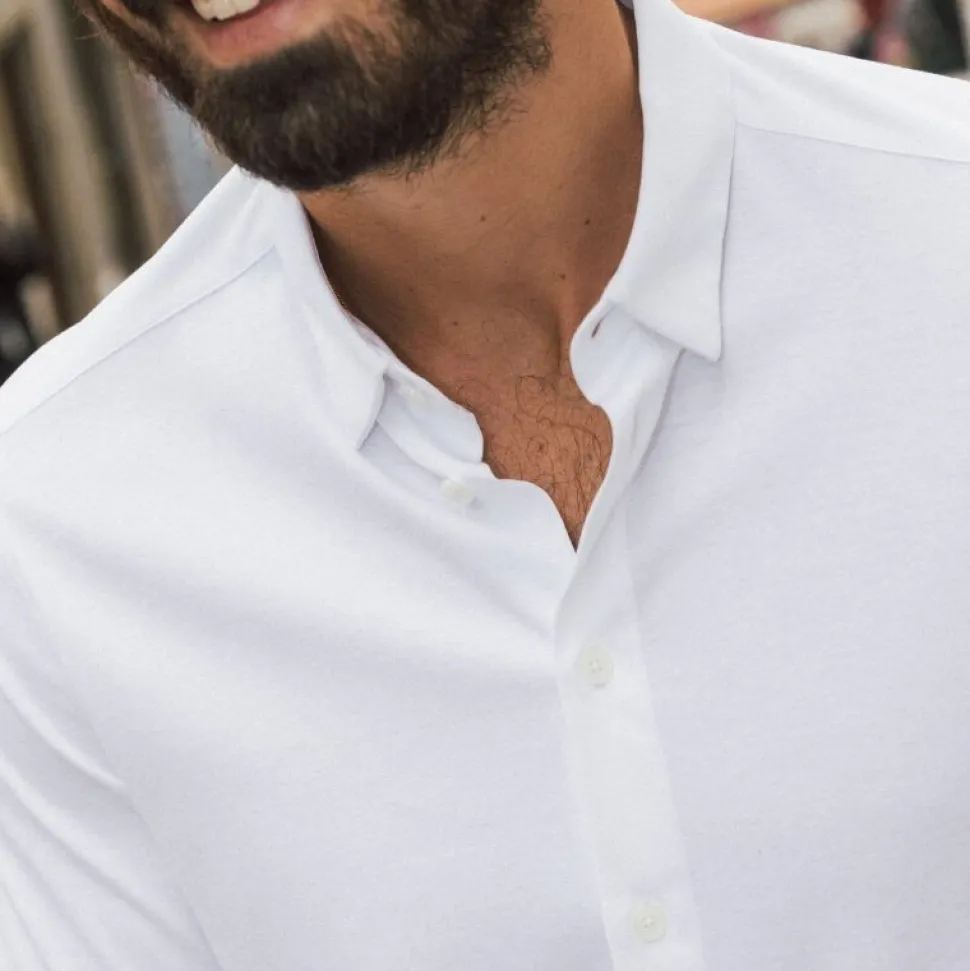 MMGMarco Jersey Skjorten har skjult button-down krave, gennemgående knaplukning samt manchetter med knapper – detaljer, der løfter helhedsindtrykket og gør skjorten ideel både til forretningsbrug og smart-casual lejligheder. En uafhængig laboratorietest af stoffet viser, at det bevarer sin form, farve og struktur – selv efter 100 vaske.