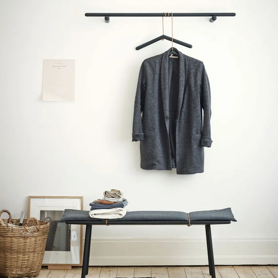 Smukt garderobeophæng fra Skagerak i et tidløst, nordisk design. Ophænget pynter på væggen samtidig med, at det er rigtig praktisk. Hæng bøjler på og brug ophænget som din nye garderobestang med fine bøjler.