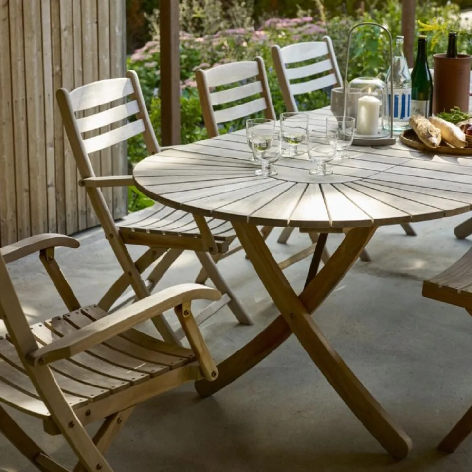 Rummeligt bord, der på fineste vis forener praktisk funktionalitet med naturlig skønhed. Selandia-serien er kendt for sine karakteristiske lette kurver og sit elegante nordiske design. Bordet er designet med to tværgående ben, der understøtter den elliptiske lamelbordplade, som let kan forlænges men enten én eller to tillægsplader. Hullet i midten af bordpladen er beregnet til en parasol, men dækkes af en messingplade, når bordet ej benyttes. Bordet er designet i samarbejde med Mogens Holmriis.