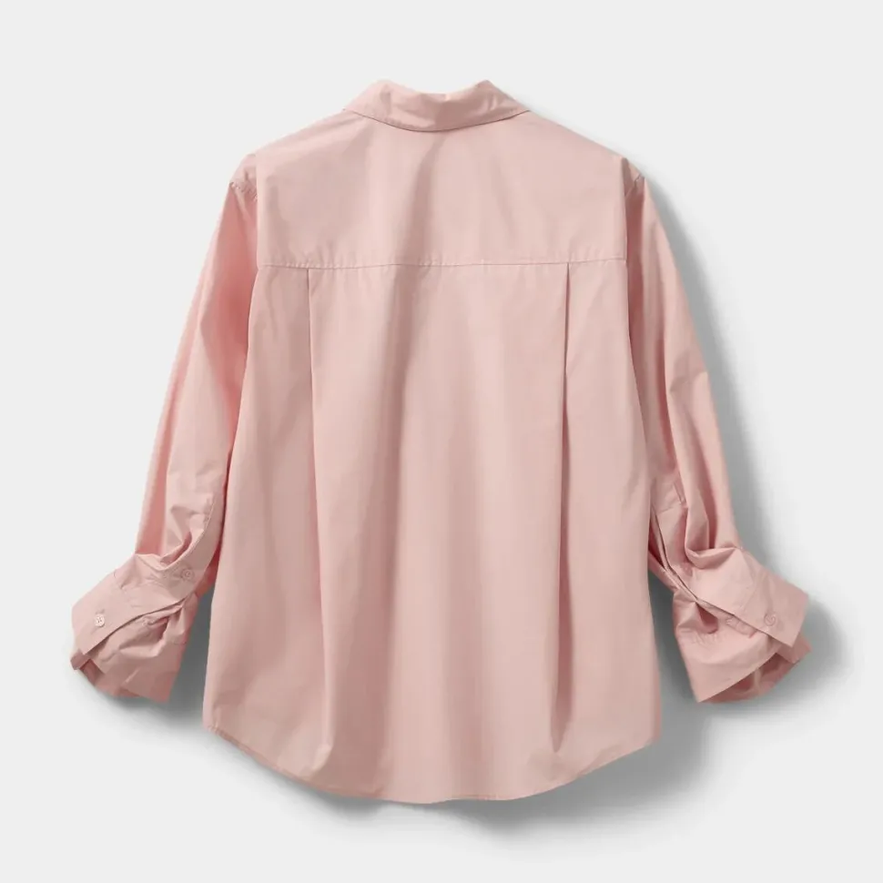 Yndefuld skjorte i en delikat nuance, der tilføjer et feminint og sofistikeret touch til ethvert outfit. Skjorten er designet med klassisk krave og skjult knaplukning foran, hvilket giver et stilrent og elegant udtryk. Frontlommen med det fine logo-broderi tilføjer et subtilt element, mens bærestykket på ryggen med dybe læg skaber bevægelse og et unikt grafisk udtryk. De lange ærmer er afsluttet med en dekorativ detalje nederst, som giver skjorten et gennemført finish.