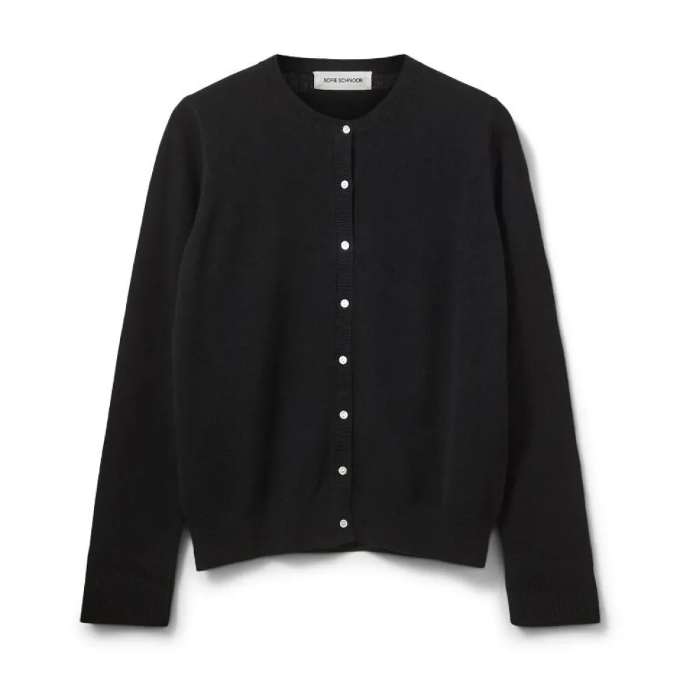 Denne klassiske sorte cardigan fra Sofie Schnoor er en alsidig garderobefavorit, du kan bruge sæson efter sæson. Den er fremstillet i 100% blød merinould, som både varmer og ånder, og dermed sikrer komfort hele dagen.