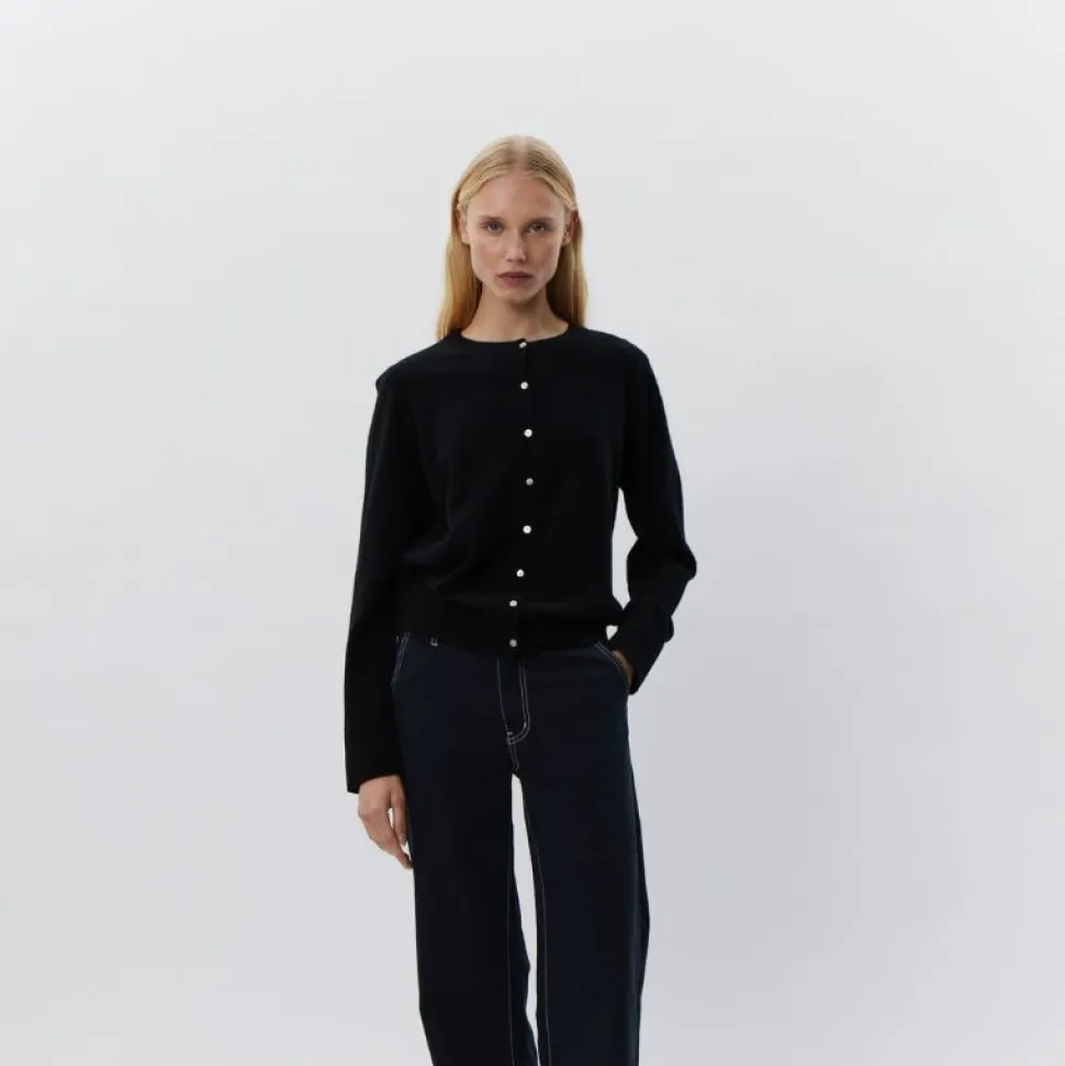 Cardiganen har et enkelt og tidløst design med lange ærmer, regular fit og knaplukning foran, hvilket gør den nem at style – både lukket over en top eller åben over en kjole eller skjorte. Det sorte ulddesign gør den perfekt til både arbejde og hverdagsbrug, hvor du ønsker et elegant, men afslappet udtryk.