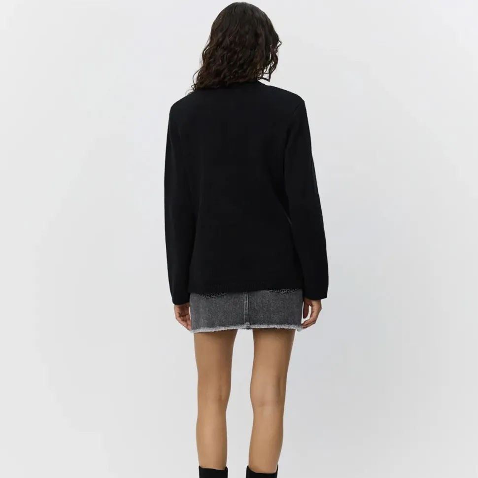 Tidløs strikklassiker med et raffineret twist, der opgraderer garderoben. Den elegante cardigan kombinerer klassiske linjer med sofistikerede detaljer, hvilket tilfører karakter ethvert udtryk. De let markerede skulderpuder skaber struktur og fremhæver silhuetten på fineste vis, mens de store sømandsknapper skaber et iøjnefaldende udtryk. Fire frontlommer, hvoraf de nederste har knaplukning, giver både funktionalitet og visuel interesse, og ribdetaljer på lommer og kanter fuldender designet med finesse. Cardiganen er et alsidigt statement-piece, der kombinerer komfort, kvalitet og tidløs stil.