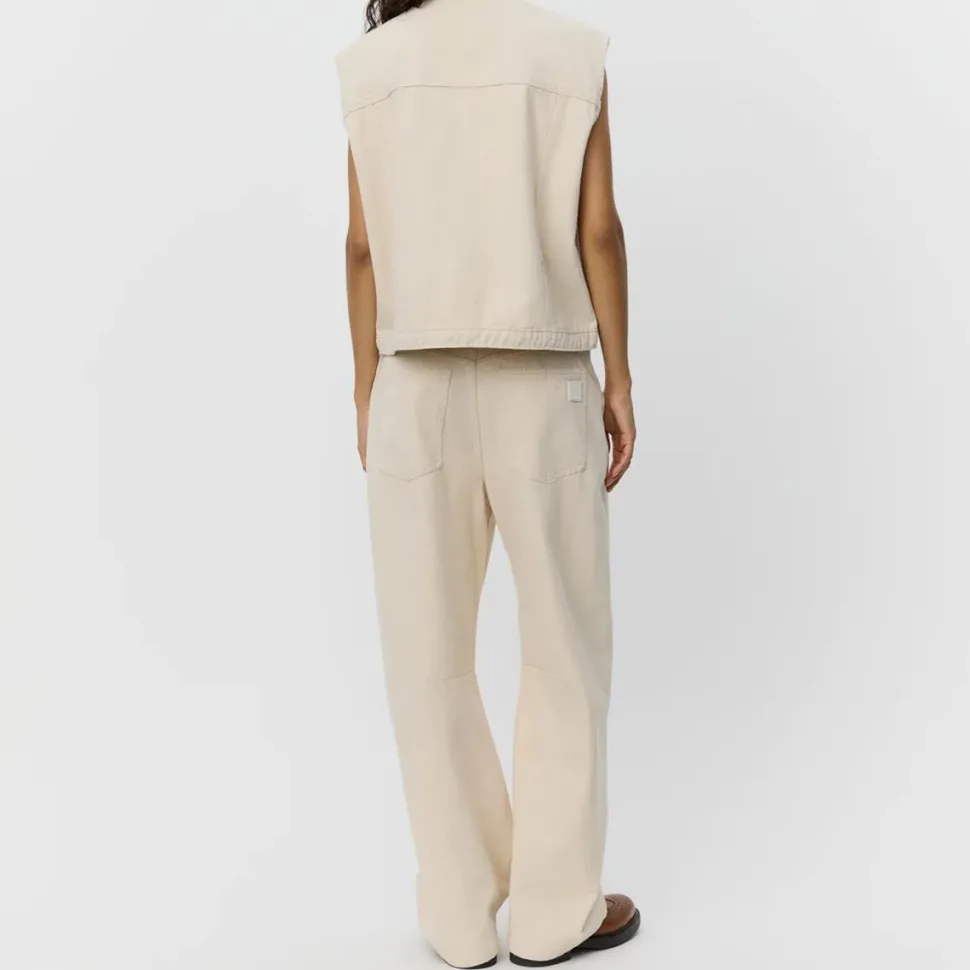 Moderne og tidløse jeans, der kombinerer barrel-fit og mid-waist for en flatterende silhuet og ubesværet komfort. Jeansene har klassisk femlomme-design, lynlås- og knaplukning samt bæltestropper, der sikrer funktionalitet og et gennemført look. Indsnitsdetaljerne på benene tilføjer subtil struktur og et unikt grafisk element, der skiller sig ud på en elegant måde.