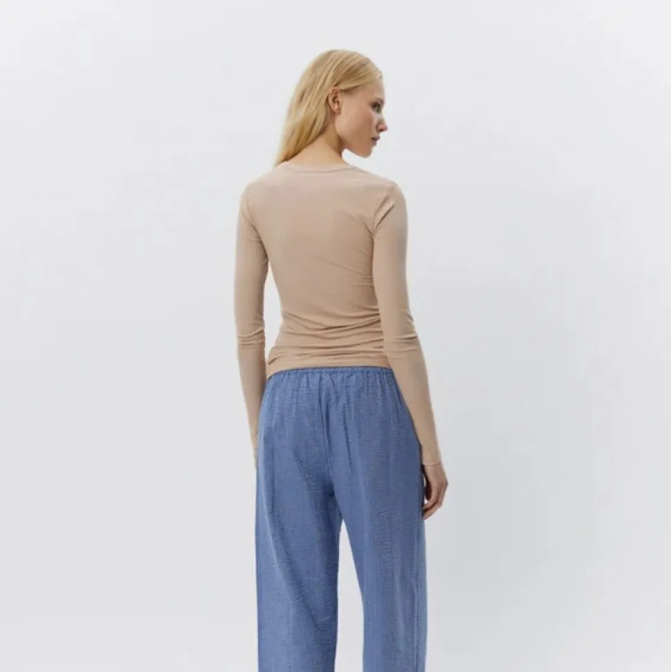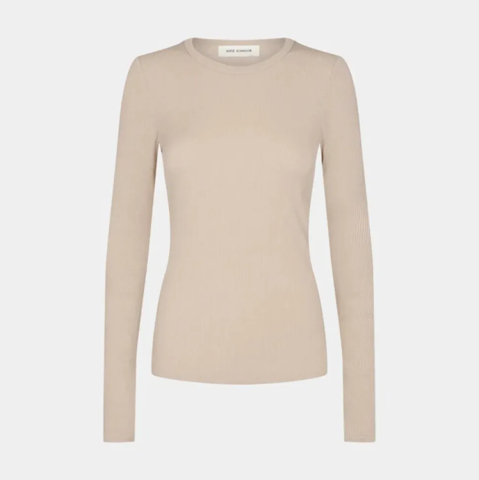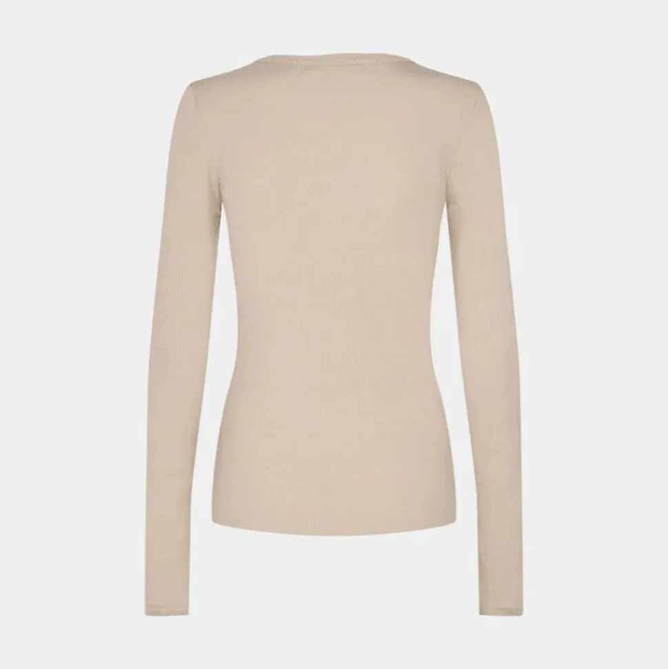 Denne langærmede T-shirt er en essentiel basic med et flatterende slim-fit design. Den bløde kvalitet med viskose og spandex giver en behagelig, fleksibel pasform – ideel som lag-på-lag eller alene.