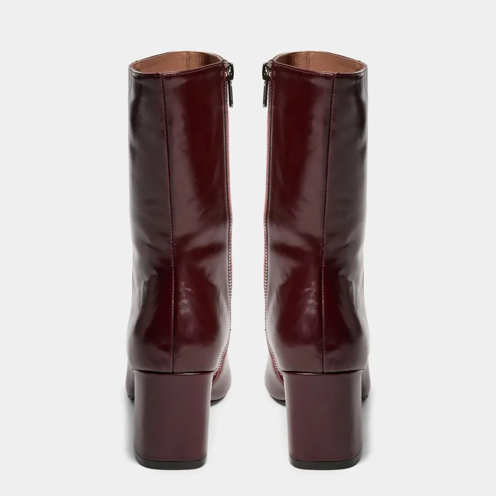 Glansfulde støvler, der kombinerer klassisk elegance med moderne kant – et statement-piece til skosamlingen. Den spidse snude og den markante syning i midten giver støvlen et raffineret udtryk, mens den høje hæl tilføjer både højde og attitude. Med lynlås i siden er støvlen let at tage af og på, og det gennemførte design gør den ideel både til hverdagsbrug og særlige anledninger. Et par støvler, der løfter ethvert outfit og tilfører garderoben både eksklusivitet og stil.