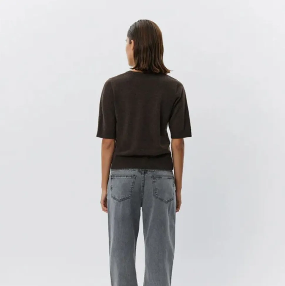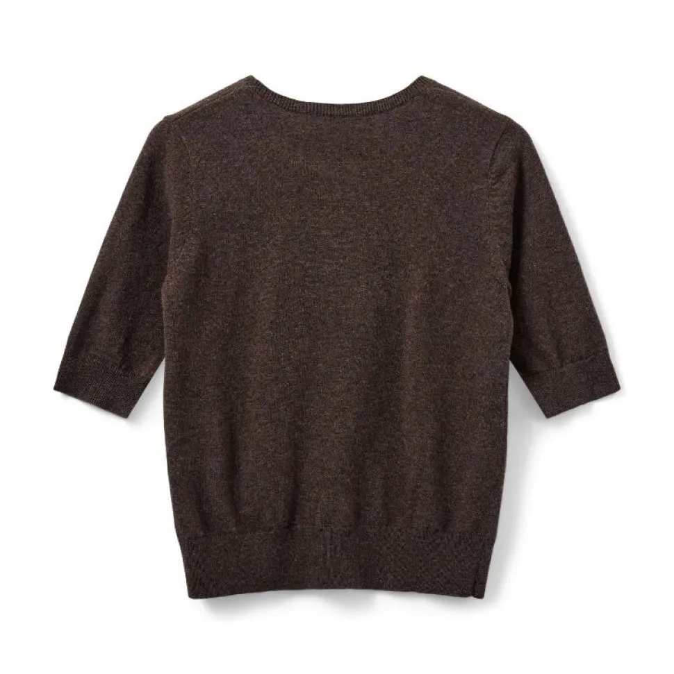 VianaSW striktrøjen fra Sofie Schnoor er en stilren og tidløs klassiker til garderoben. Den er designet i en smuk brun nuance kaldet Brown Fudge, som passer perfekt til både efterår og vinter, men også som en elegant overgangsstrik på kølige sommeraftener. Trøjen har korte ærmer og en regular fit-pasform, som gør den både behagelig og alsidig at style.