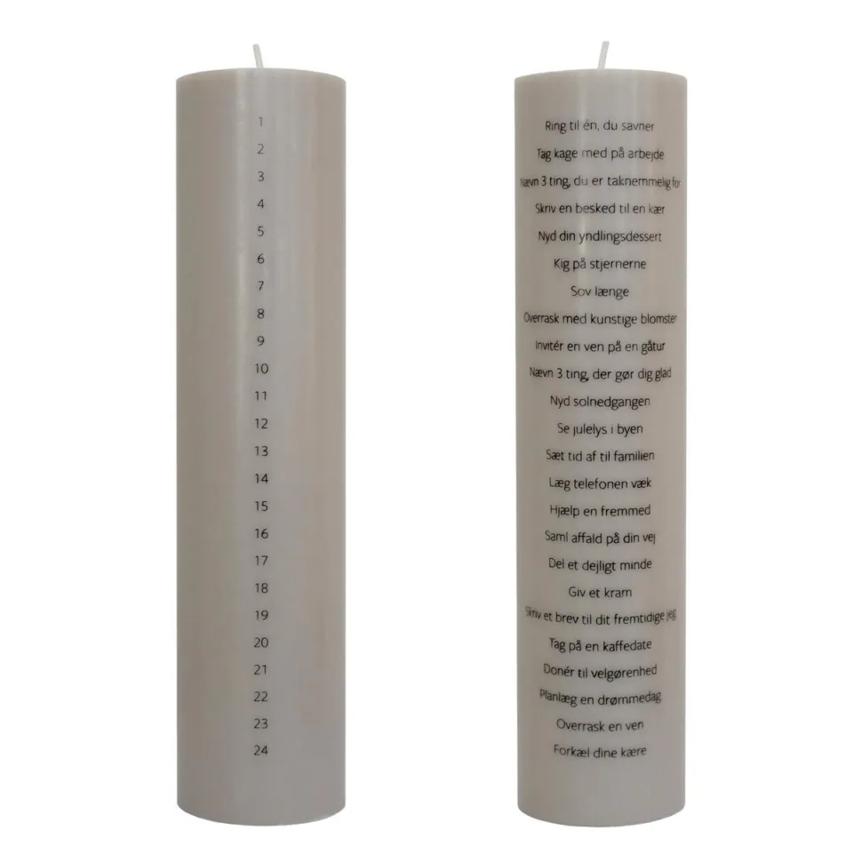 Smukt kalenderlys, der kombinerer elegance med varme og eftertænksomhed. Hver dag frem til juleaften tælles ned, hvilket giver mulighed for små stille øjeblikke midt i decembertravlheden. Lyset skaber både hygge og nærvær, og fungerer som en smuk tradition i hjemmet. Kalenderlyset er ideel som en oplagt gaveidé – en kærlig gestus, der spreder varme og inspiration til dem, man holder af.