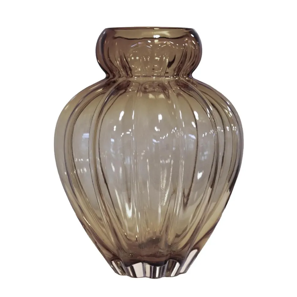 Tidløs vase med et skulpturelt formsprog og elegant mønster. Vasen er designet til at være et centralt designobjekt i boligindretningen hele året – uanset blomstertrend og sæson. Vasen er mundblæst, hvorfor der kan forekomme luftbobler og andre ufuldkommenheder – dét er blot en del af charmen.