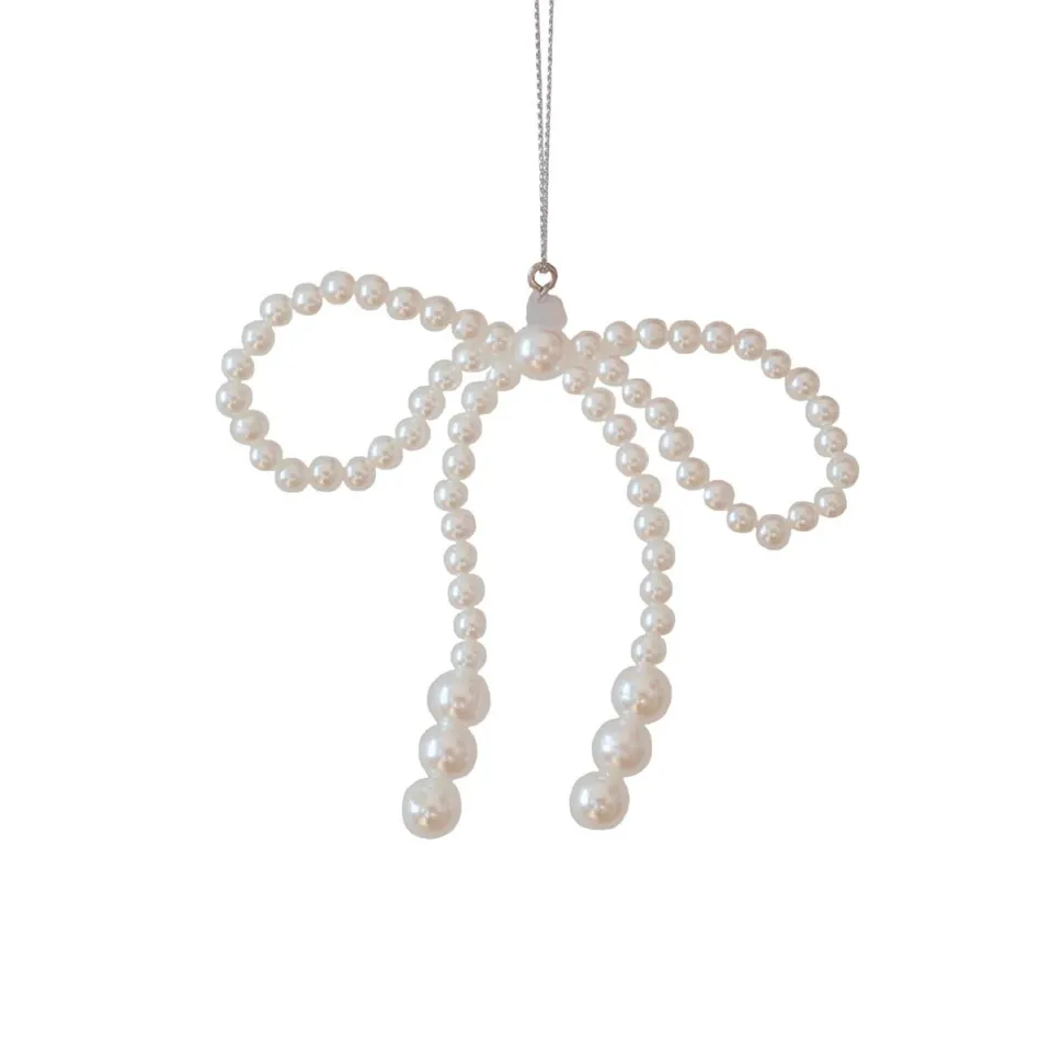 Yndefuld sløjfe med fine perler. Sløjfen tilføjer et elegant og feminint præg til juletræet eller årets borddækning. Dens klassiske og luksuriøse udtryk løfter julestemningen og skaber en sofistikeret atmosfære. Sløjfen emmer af tidløse detaljer, varme stemninger og et design skabt til årets smukkeste øjeblikke. Benyt ornamentet på juletræet, som ophæng i vinduet eller som dekorative elementer i skåle og juledekorationer. Små magiske detaljer, der gør december helt særlig.